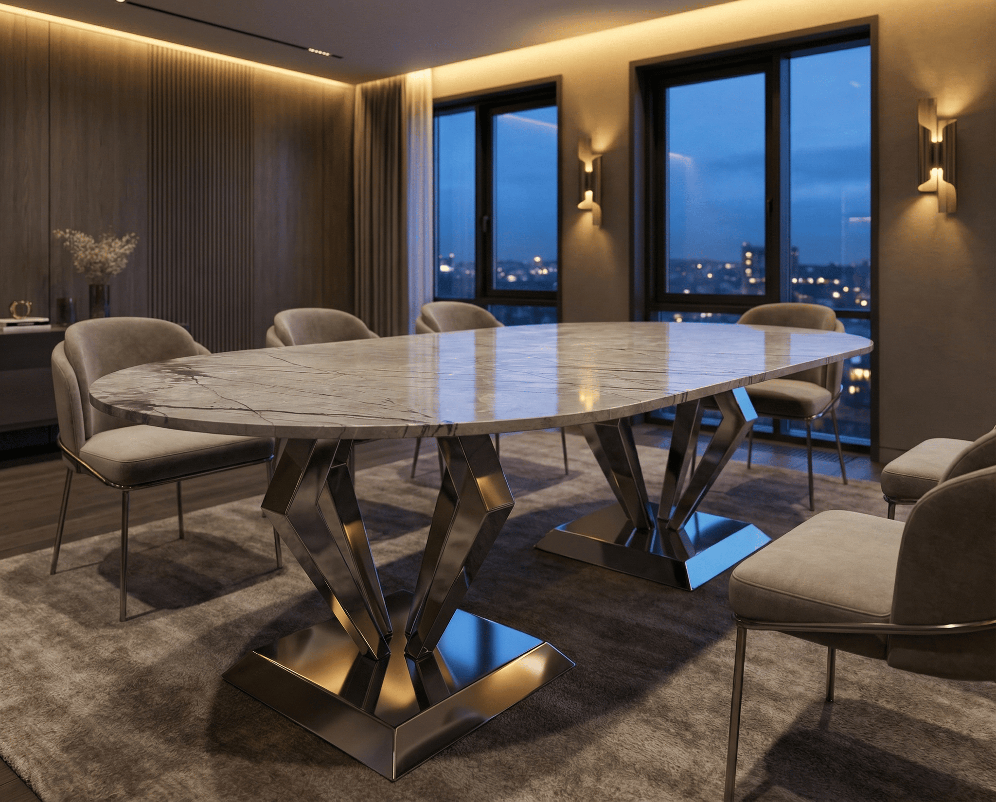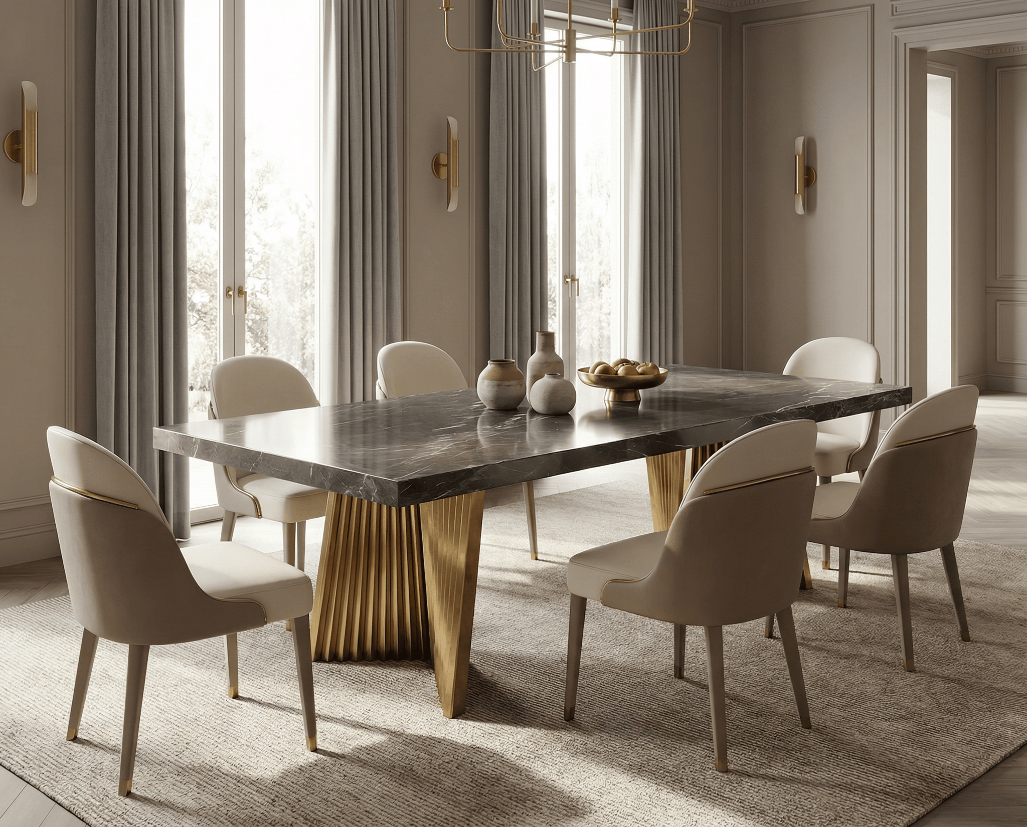 Calacatta Gold marble tables stand as symbols of prestige, defined by radiant white stone and dramatic gold veining. Crafted for statement interiors, these luxury tables appeal to buyers searching for iconic marble furniture that elevates dining areas with timeless elegance and architectural authority.